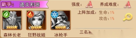 组合介绍:森林长老与狂野战姬协同作战,首回合就能打出高额群攻伤害,能显著提升通关效率,十分推荐刚进入游戏的新手进行培养。