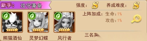 组合说明:熊猫酒仙攻守兼备,配合风行者收割残血敌人,灵梦幻蝶保证续航,综合能力全面优秀。