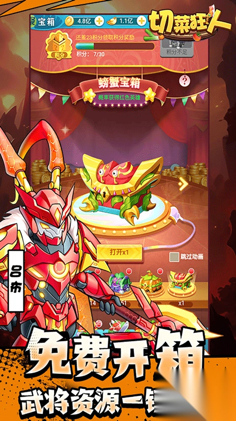 切菜狂人官方版,这是一款以三国与神话作为背景的策略rpg竞技类游戏。它采用了q萌的游戏画风,把所有卡牌武将都设计成食物形象。就好比传说里三国第一猛将吕布,被描绘成火辣的辣椒;而齐天大圣孙悟空,则被画成了香蕉;拥有雄才伟略的诸葛亮,变成了举着扇子的鱿鱼。再搭配上轻松的背景音乐,整个游戏显得十分可爱生动。