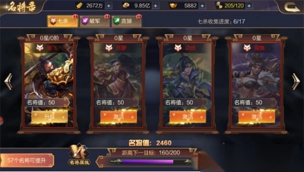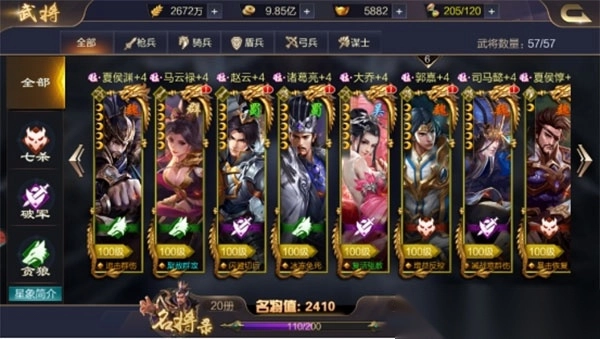 4、可以通过培养武将(升星、训练、天赋、升级等),或者其他养成的系统来增加全武将属性,增加武将的实力。