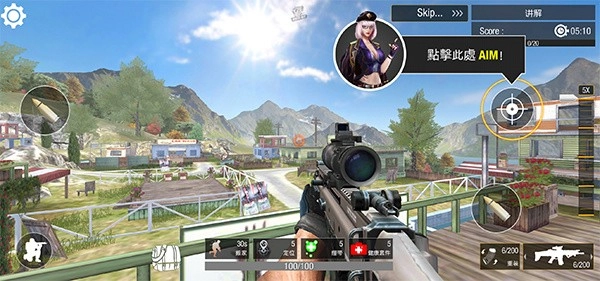 2、开镜后,就能看到远处的敌人,接着瞄准,点击左上角或右下角的开火键进行射击。