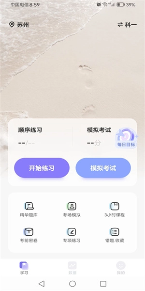 2、打开应用后,进入首页可选择“开始答题”或“模拟考试”,根据自身学习进度自由选择