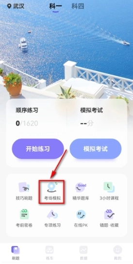 1、在相关考试应用或系统界面中,找到并点击【考场模拟】选项,进入考场模拟模式