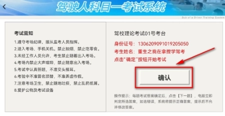 2、进入考场模拟后,确认信息无误,点击【确定】按钮,即可正式开始考试