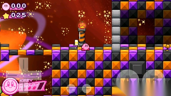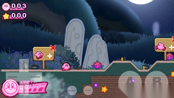 3、进入游戏如图,玩家需操纵卡比跳跃闯关;