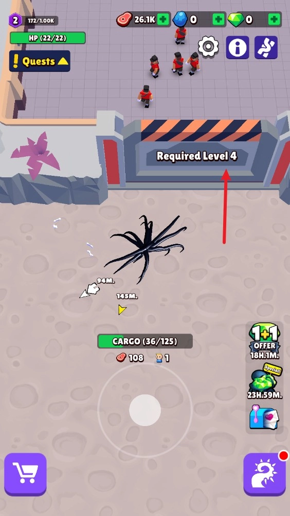 1. 进入游戏之后,我们借助下方的虚拟摇杆操控毒液移动,当靠近NPC时,还能够接取任务。