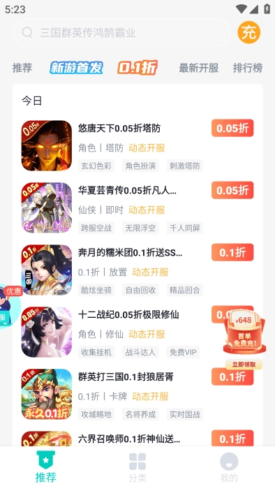 1. 官服/h5手游:充值即享满额立减,还有海量优惠券可同时使用,福利满满,优惠多多。