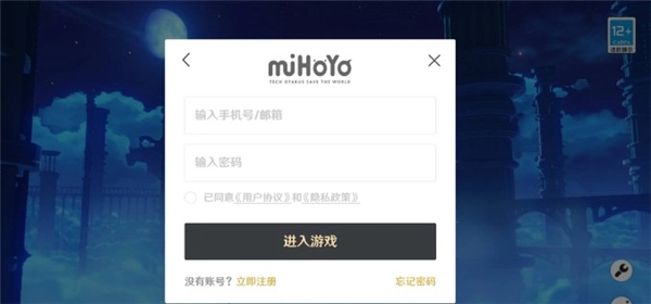 1、第一种登录方式肯定有的是玩家的账号与密码登录,输入玩家自己的账号密码后勾选同意用户协议与隐私政策即可登录。
