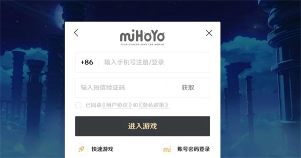2、第二种就是手机号快捷登录,玩家输入游戏中所绑定的手机号码后,在手机上会接收到验证码,将验证码输入后勾选同意用户隐私协议即可登录游戏。