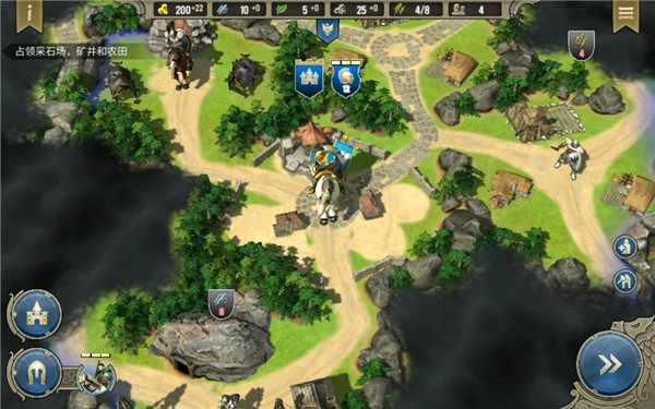 1、玩家能够依次创建属于自己的王国,借助完成任务以及自由博弈的模式,持续拓展帝国的版图,攻克城市,占有矿山或农场,探寻宝藏。