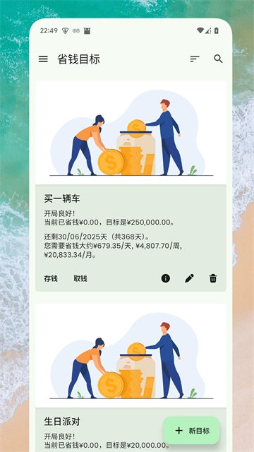 一款简洁的工具,其目的在于助力您轻松规划并管理储蓄目标,养成因美好事物而存钱的习惯。