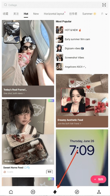 6. 点击主页面中间栏的创作按钮,即可进入灵感专区。在这里,大家能够找到拍照、P图攻略以及灵感。