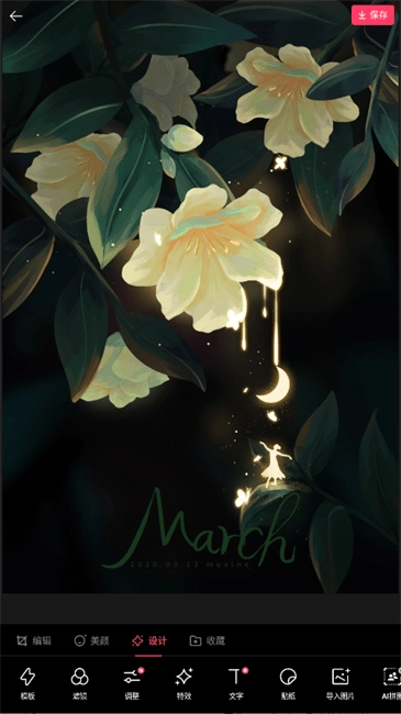2. 在“设计”界面当中,能够挑选多种滤镜样式,亦或是特效等,以此来优化照片。