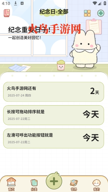 免费纪念日APP,是一款能帮用户记录纪念日的时间工具。它界面超可爱,功能丰富,能让用户在时间长河中,为重要日子留下美好纪念。无论是属于个人或两人的特殊时刻,还是值得铭记的重大事件,都能用它记录。而且软件操作简便,快来下载体验吧!