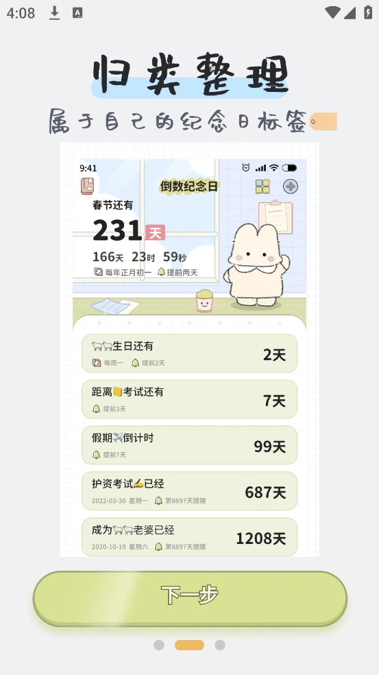 这是一款能对纪念日、生日、恋爱日进行倒计时提醒的工具。