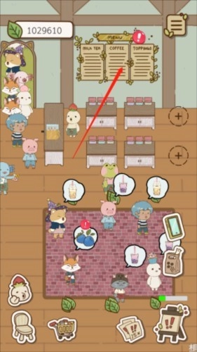 1、进入游戏点击图示奶茶菜单墙;