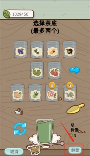 3、挑选新奶茶的茶底,处于上锁状态的是尚未解锁的,我们得利用“叶子”来解锁。