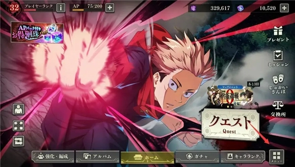 8、《咒术回战》中新绘制的场景,称为“回转残花”。为你的角色装备“灵梦残卡”来强化其能力。