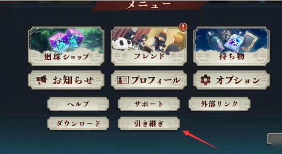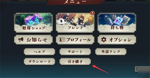 日服游戏经典的引继码登录,通过新手教学后可以在主界面右下角菜单(メニュー)里的账号继承(引き続ぎ)绑定
