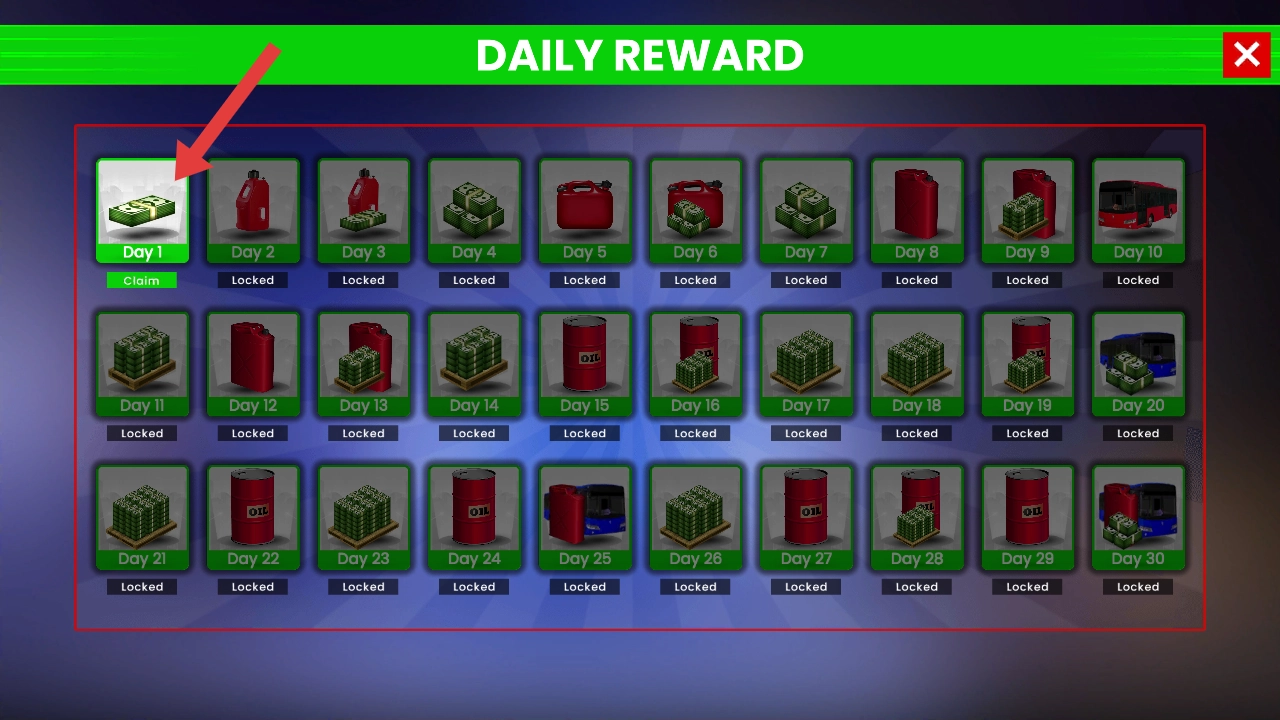 1、进入每日奖励界面,点击【Day1】的【Claim】按钮,领取当日奖励,后续天数需解锁后领取。