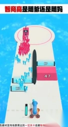 1、操控拳击手(图1红箭头),撞击同色角色升级(如Lv.26),避开减益门(-10),冲向终点擂台。