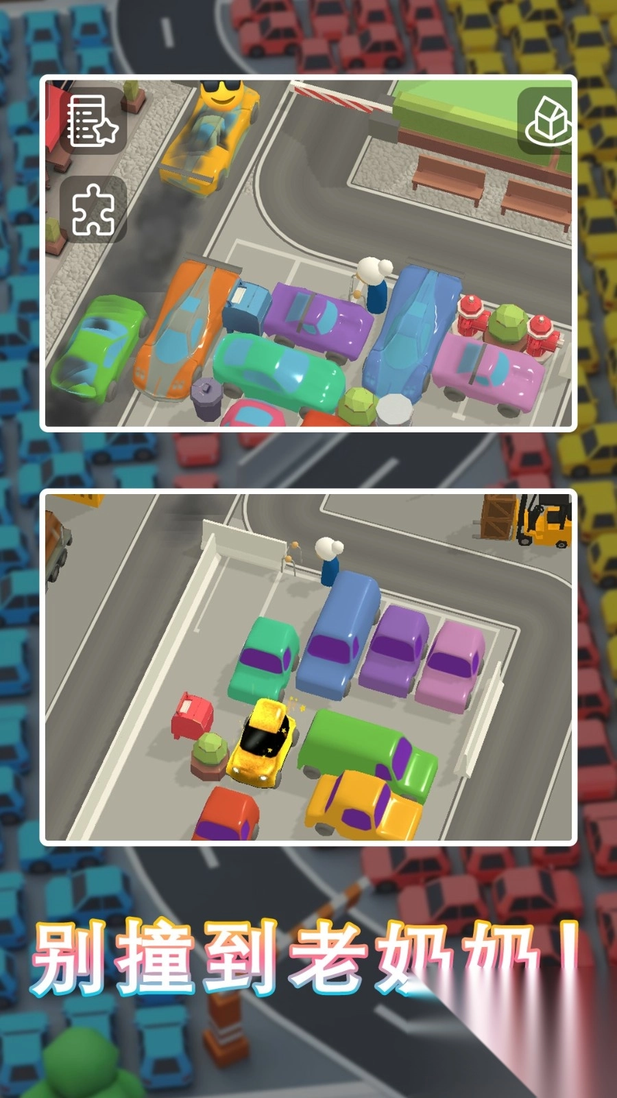拥挤停车场游戏是一款手机游戏,在游戏里你将扮演停车场管理者,合理管控车辆进出。面对拥挤的停车场,你得引导一辆又一辆汽车按固定顺序停放,防止停车场拥堵,确保整个停车场秩序井然。