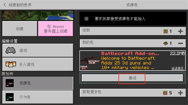 3、于新建界面寻觅资源包,在资源包下的“我的包”中寻得战斗工艺模组并点击。