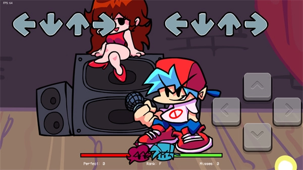 4、想要打败boss,你得跟着节拍和音乐,及时按下箭头。屏幕下方有游戏进度条,尽量让进度条往左边走。要是你热衷于挑战手速,还对不同的模组版本感兴趣,那周五放克夜错误化模组整合版可一定得试试。