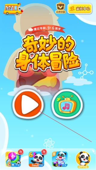 1、点击橙色【播放】按钮,开启【奇妙的身体冒险】。