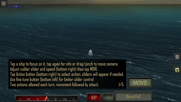 1. 船只操控方式:点击船只以聚焦,再次点击可获取信息或者移动镜头,调整舵滑块及速度后点击“MOVE”。