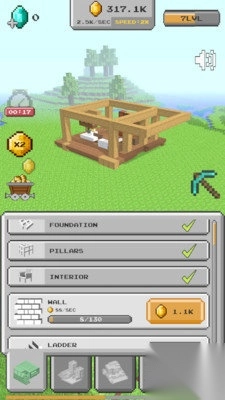 2、当【FOUNDATION】【INTERIOR】等前置建筑完成(呈现绿色对勾状态)后,花费金币对墙壁进行升级,使房屋结构更加完善,从而推动建筑进程。