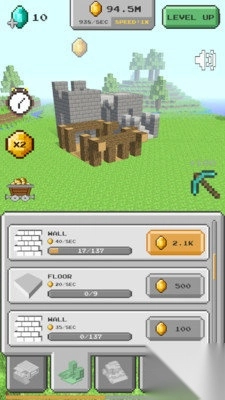 3、在进行建造操作时,首先点击左上角的钟表图标,以此加快金币的产出速度。随后,点击【WALL】旁边的金色按钮,通过消耗金币来持续升级墙壁,进而提升建筑等级。