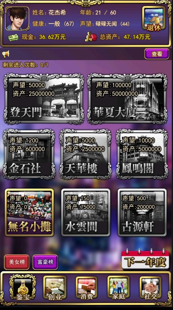 车行和房产的添加能提高你的声望,让你进入更高级的古董行。