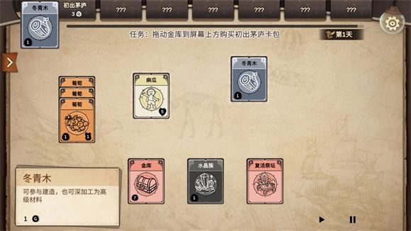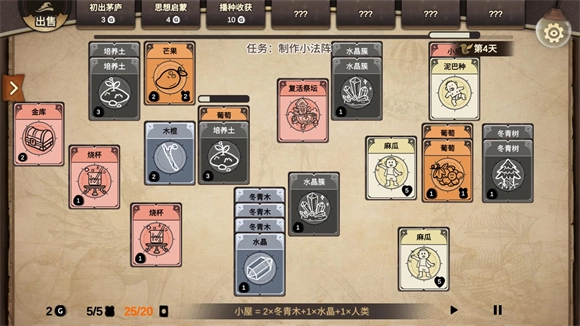 4、将麻瓜放在不同的卡牌上可以收集资源和材料。
