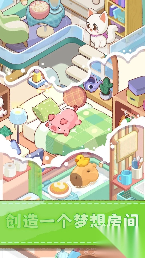 3、提供了丰富的装饰选项,玩家可以根据自己的喜好和创意,自由装饰房间。