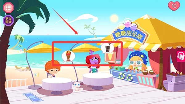 1、游戏以海滨甜品店为背景,画面清新明亮,椰树、沙滩和彩色糖霜共同营造出一种放松治愈的度假氛围。