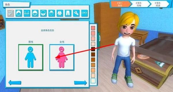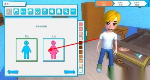 1. 首次创建主播角色时,能够自定义形象,从游戏、美妆、美食等领域中选择初始直播方向,并在虚拟公寓里布置拍摄场景,完成第一支试播视频的选题及制作。