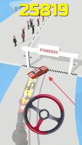 2、遇弯道提前转向,利用漂移超对手;直道长按加速,拉开差距,注意积分(如25819)。