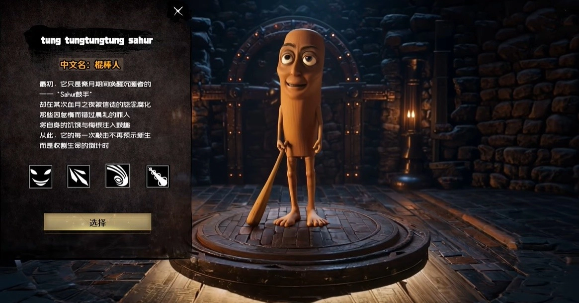 1、游戏的主角是备受欢迎的角色——Tung Tung Tung Tung Sahur木棍人。