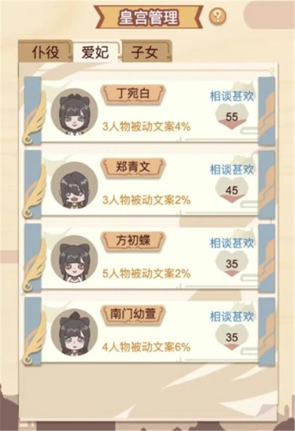 策略性挑选后宫佳丽,开展进谏与寻访活动,为过程增添趣味。