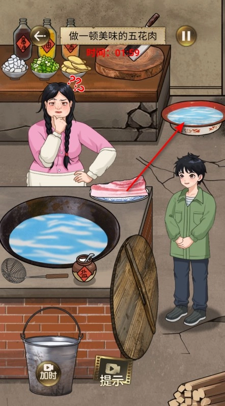 除了玩法丰富多样,《我要变最强》在美术风格、音效搭配以及 UI 界面设计上都下足了功夫,操作手感更是无比流畅。游戏的每一个细节都经过反复雕琢,只为给玩家带来一种既轻松愉悦又刺激过瘾的游戏体验。1. 把桌上的肉拽到红色的盆子里进行清洗。