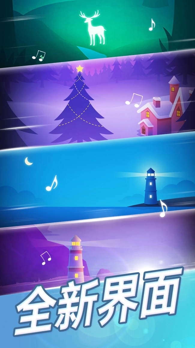 3、打造了一系列迷人的主题场景,搭配梦幻般的钢琴块设计,还增添全新的挑战环节,让你尽情释放充满自信的自我。
