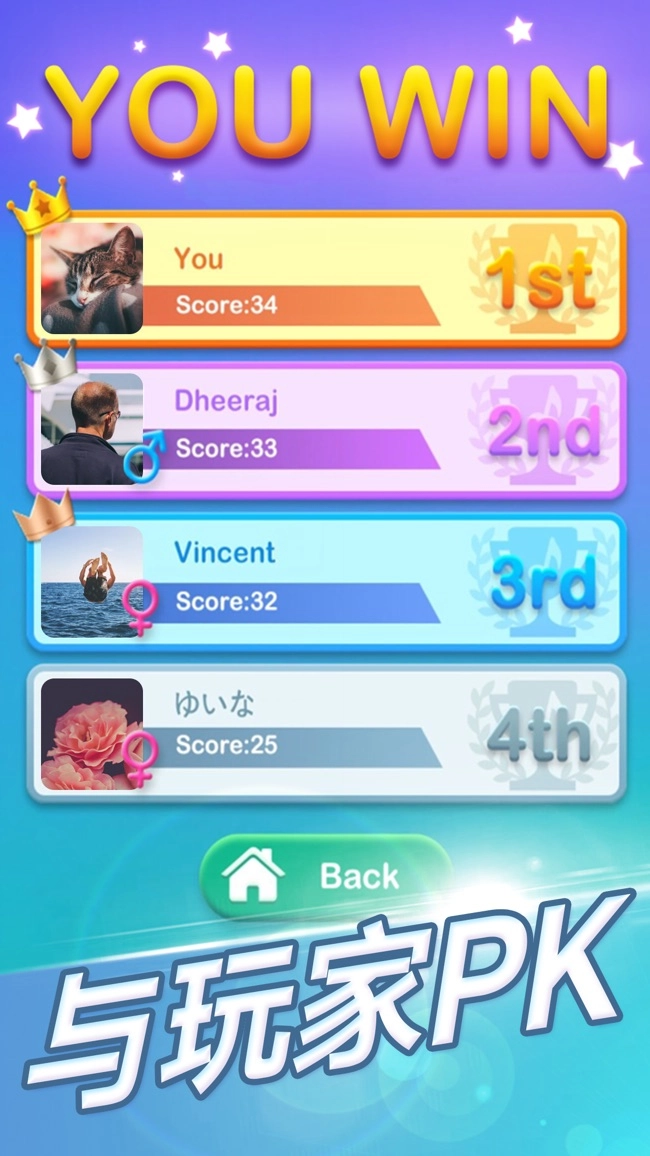 4、PK排行系统:与好友较量手速,携手冲击全球排行榜。
