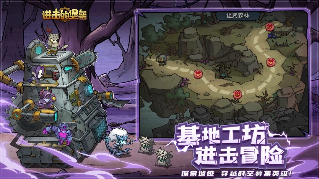 《进击的堡垒》是一款以末世废土为背景的策略塔防游戏。在游戏中,你将化身为一名指挥官,操控具备神秘黑科技的移动堡垒。在被黑潮危机笼罩的魔幻世界里,率领一群超时空英雄,一路驾车疾行,同时巧妙地布置防御塔、施展技能,从而拯救世界,扭转未来的命运!
