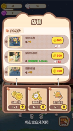 1、若想解锁动物夜市的都市小巷,就得持续壮大自身店铺,这涵盖了对店铺进行装修、增添员工,以及持续服务客户以获取客户好评等方面。