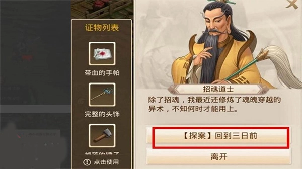 首先,我们前往李捕头那里领取探案任务“谁是卧底”。接着,前往东海渔村,找到另一位林捕头,由此进入李氏渔村。进入村子之后,我们要找到5个证物,分别为手帕、头饰、锤子、镯子以及戒指。要知道,如果证物找不全,李芸是不会信任你的,这样一来,后续任务也就无法触发了。待找齐证物后,去到“招魂道士”的棋局处,让他助你回到三日前。