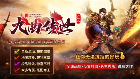 1. 九曲传世推出独具特色的复古三职业,融入【全新阵营、六大职业流派】,完美融合03年传世的经典回忆与创新元素。