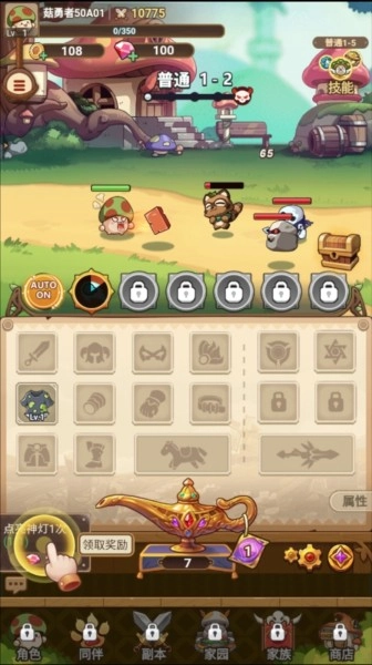 《冒险大作战》安卓版本,是一款聚焦冒险题材的精品放置挂机手游。它拥有美轮美奂的画面与美妙动听的音效,能让玩家仿若置身其中,真切领略冒险世界的独特魅力。游戏运用实时战斗系统,玩家刚踏入游戏,就会邂逅一只可爱的小蘑菇。在游戏过程中,玩家需持续点击神灯,获取各类法宝并巧妙运用,以此击退一波又一波来袭的敌人。