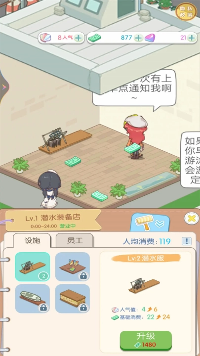 3、持续进行经营与拓展,循序渐进地解锁更多区域及全新内容。