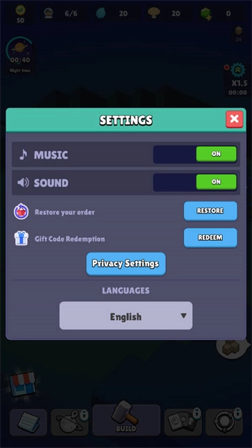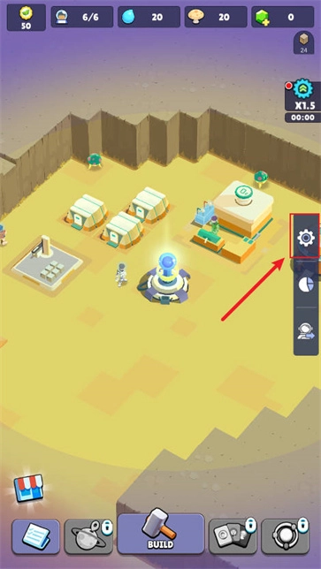 1. 在本站点击安装并打开游戏,进入游戏后,先点击右侧的设置按钮。